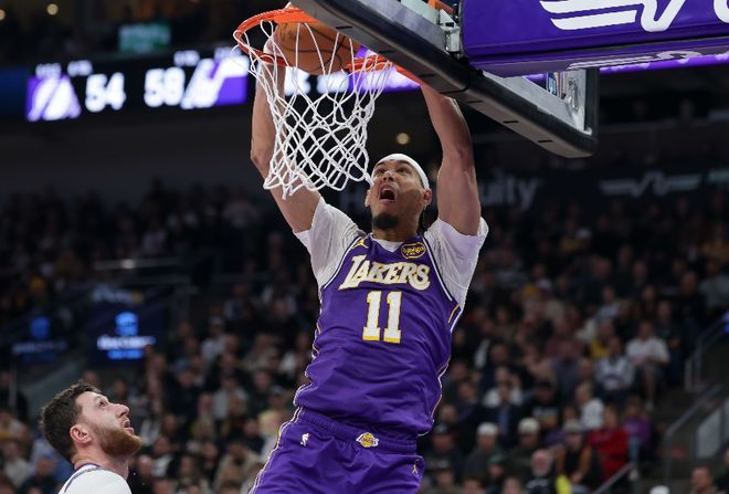 湖人113-120掘金2喜2忧!海斯+八村垒太好用,东契奇末节再现弊端