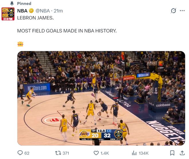北京时间3月6日,41岁的勒布朗-詹姆斯再度迎来历史第一的里程碑,他的运动战进球15838+超越贾巴尔,换言之勒布朗已经成为历史进球王+历史得分王,而且此役的他是攻防一体,末节还遭遇了左手腕伤势,全场比赛16分8助攻5篮板3抢断1盖帽还是无缘逆转掘金。