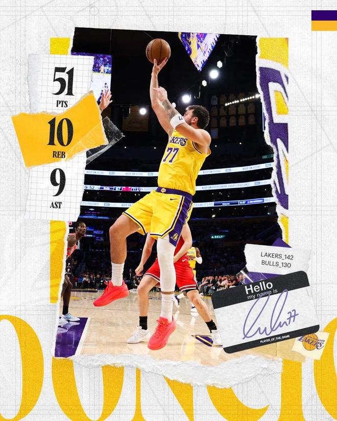剩下1分44秒前,湖人再次被追到11分,然后东契奇造犯规,在罚球线上得到了个人第51分。