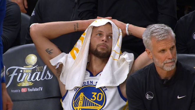 波杰姆斯基在场边擦汗,眼神空洞。他知道自己拿了25分,但球队输了。他也知道,只要库里在,自己根本不需要这么累。