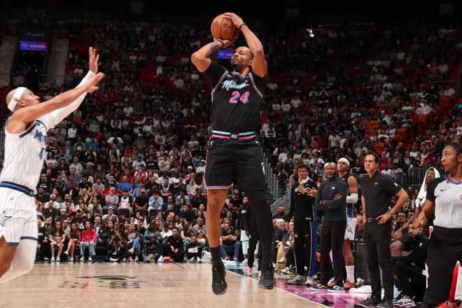 热火过去7场豪取7连胜,魔术过去6场豪取6连胜,本赛季前4次交锋热火均输给魔术。本场热火缺少维金斯、约维奇、罗齐尔,魔术缺少艾萨克、布莱克、小瓦格纳。首节开局双方5-5,魔术很快一波9-0攻势扩大优势,阿德巴约两罚全中。魔术继续扩大18-8领先,希罗三分开火引领一波8-4攻势追分,魔术一波9-2攻势扩大31-18领先。魔术继续压制热火扩大领先优势,首节结束魔术41-27领先热火。首节魔术23中16接近7成准星,其中三分7中3,登场9人全得分;热火21中8,其中三分10中4,希罗8分与阿德巴约3分。