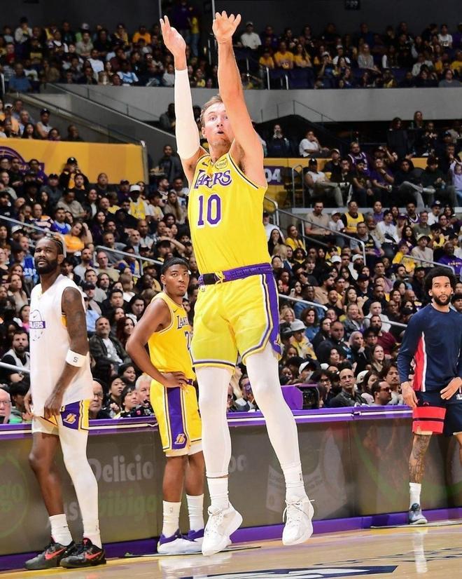湖人队神射手卢克肯纳德,在此役强势归位。肯纳德替补出战23分钟,10投7中,三分5中4、罚球1中1,怒砍19分2篮板1助攻1抢断,正负值+20。肯纳德以70%的命中率砍下了全队的第二高分,并且他还以80%的命中率投进了全场最多的4记3分球。