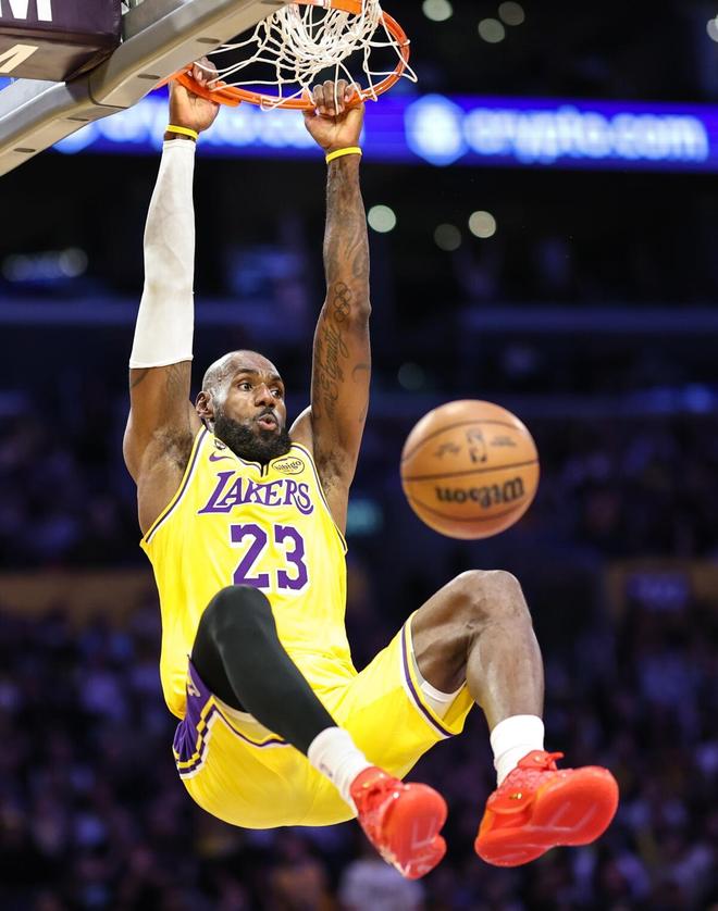 湖人队当家球星勒布朗詹姆斯,在此役展现了顶级的带队能力。詹姆斯上场33分钟,16投8中,三分3中1、罚球6中4,怒砍21分10篮板12助攻1盖帽的3双数据,正负值+25全场最高。詹姆斯以50%的命中率砍下了全场的最高分,他还是此战的篮板王和助攻王。詹姆斯的超强领袖气质,在此役可见一斑。末节,詹姆斯率队轰出了23比7的进攻狂潮,帮助湖人将分差扩大至30分,就此收下了比赛。在东契奇被禁赛的情况下,詹姆斯扛起了球队。