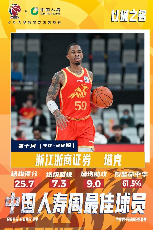 北京时间3月31日,CBA官方宣布,赵睿、塔克当选2025-2026赛季CBA联赛常规赛第十周中国人寿周最佳球员。