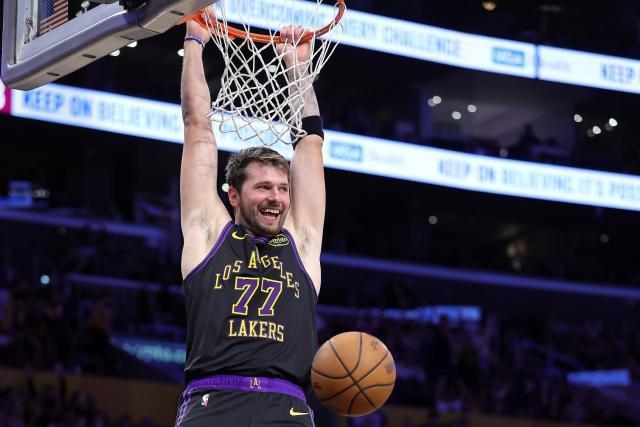 东契奇用一记快攻双手暴扣结束了自己的砍分表演,他特意在篮筐上吊了一会才跳下来,脸上绽放灿烂的笑容,随后主动犯规下场。湖人以127比113轻取骑士,取得四连胜,为美国时间的湖人3月份征程画上了圆满的句号。