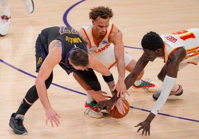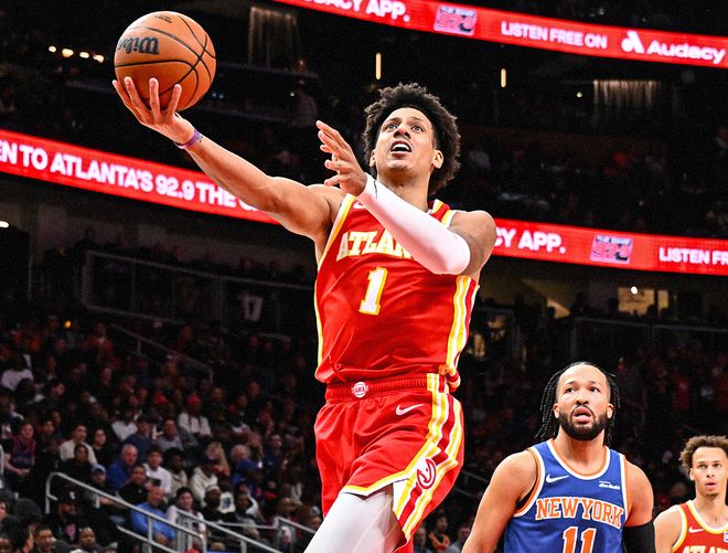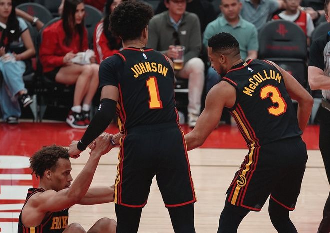 尤其是杰伦约翰逊,有冲击力,有不错的传球视野,外线的沃克和麦克勒姆提供投射效率+产量保证,奥孔武制霸篮下,丹尼尔斯则兼具协防抢断+攻防转换,作为曾经联盟最佳防守球员,丹尼尔斯本赛季场均12分7篮板6助攻2抢断,锋线万金油!相比之下,他们替补席无论是库明加、还是状元里萨谢、或者是文森特和兰代尔,只需要主动适应体系即可,因为杰伦约翰逊和麦克勒姆都能控场,而且全队场均30.3次助攻联盟第一,场均命中43.5球联盟第一,场均逼迫对手出现16.1次失误,联盟第四!