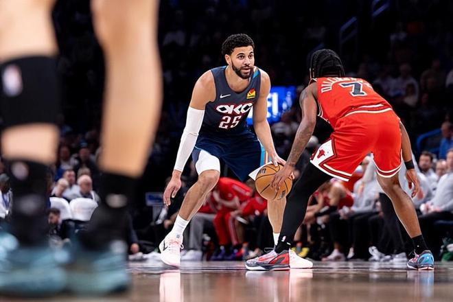本场比赛中,雷霆的替补后场新星阿杰-米切尔(Ajay Mitchell)的表现算得上是非常抢眼。米切尔全场出场16分07秒,投篮7中4,三分线外4中2,得到了10分3篮板1助攻的数据,还有3次犯规,正负值为+25。米切尔的出场时间非常有限,出手次数其实也不多,但是他在这种情况下还是展现出了自己很强的得分能力和投射能力,他的打法非常合理,看起来成熟度非常高,决策能力非常强。除此之外,米切尔在防守端的表现也是相当不错的,同样起到了很好的效果,展现出了自己不俗的防守能力。总体来看,米切尔在本场比赛中算是发挥出了自己在各方面的特点,在有限的出场时间内起到了关键的作用,这也为球队的这场大胜做出了不小的贡献。