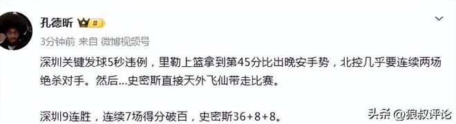 北京时间4月4日,CBA常规赛继续开打,深圳男篮104-103击败北控男篮,取得9连胜。