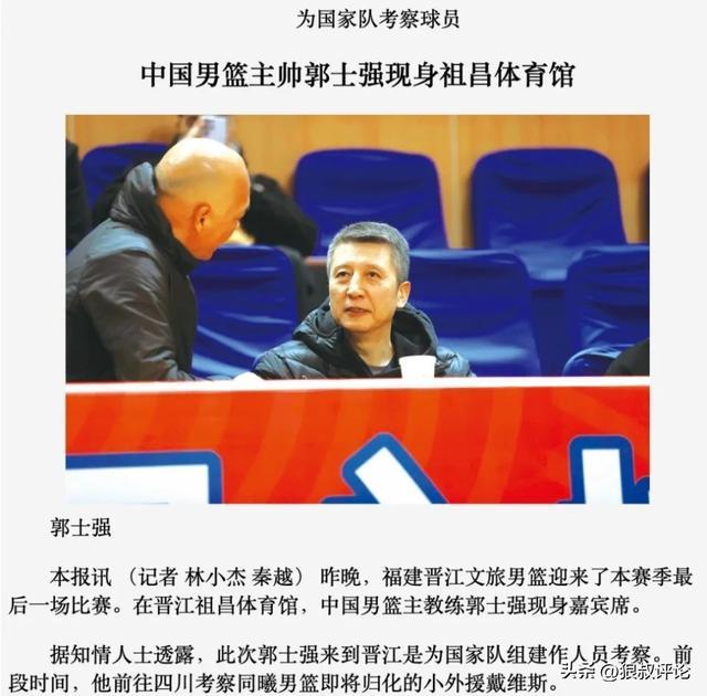 此前,郭士强接受央视采访提到归化球员问题作出回应说道:归化球员是我们需要的,现在全世界所有国家队,亚洲,南美都有归化球员,这是篮球发展趋势。被问到需要什么归化球员话题,郭士强说道,需要能打硬仗,关键比赛站出来。