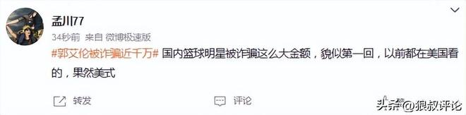 国内篮球明星被诈骗这么大金额,貌似第一回,以前都在美国看的,果然美式 。