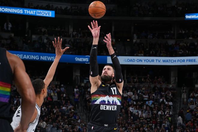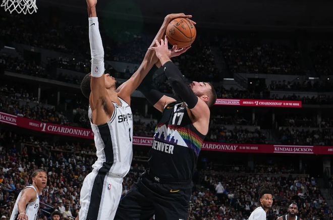 在此前的一场NBA常规赛焦点战中,主场作战的丹佛掘金经过加时苦战后以136比134战胜了圣安东尼奥马刺。本场比赛后,豪取8连胜的掘金的战绩提升到了50胜28负,继续排名西部第4位,与身前的洛杉矶湖人的胜场差为半场,与身后的休斯顿火箭的胜场差为1.5场;而结束了11连胜的马刺的战绩则是下滑到了59胜19负,继续排名西部第2位,与身前的俄克拉荷马城雷霆的胜场差为2.5场,与身后的湖人的胜场差为8.5场。