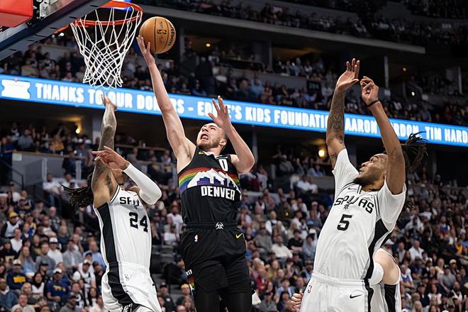 在此前的一场NBA常规赛焦点战中,主场作战的丹佛掘金经过加时苦战后以136比134战胜了圣安东尼奥马刺。本场比赛后,豪取8连胜的掘金的战绩提升到了50胜28负,继续排名西部第4位,与身前的洛杉矶湖人的胜场差为半场,与身后的休斯顿火箭的胜场差为1.5场;而结束了11连胜的马刺的战绩则是下滑到了59胜19负,继续排名西部第2位,与身前的俄克拉荷马城雷霆的胜场差为2.5场,与身后的湖人的胜场差为8.5场。