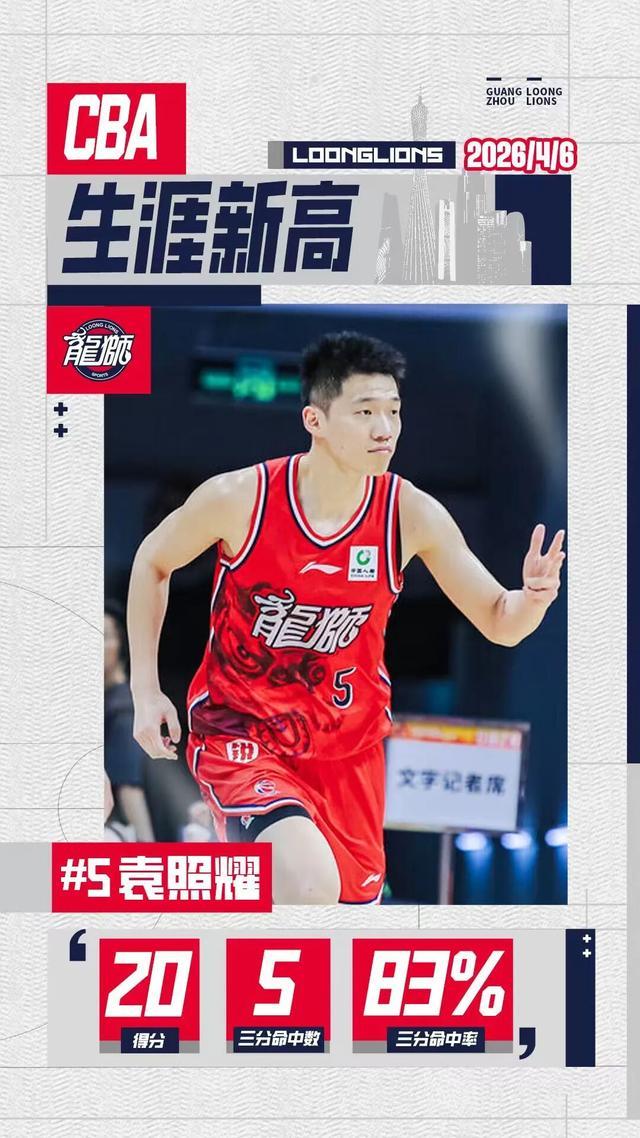 同时袁照耀在本场比赛中创下生涯新高,砍下20分,三分命中率高达83%!❤️再接再厉吧小袁!!