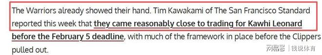 据《旧金山标准报》报道,早在2月交易截止日前,勇士与快船就接近达成伦纳德交易,只差快船最后点头。如今休赛期临近,这笔交易再次被提上日程。