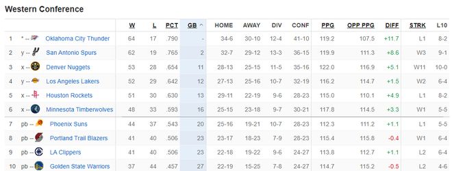 湖人这场胜利彻底稳定了西区的格局,西部前四火箭队已经没有希望了,火箭早些时候惜败森林狼已经锁定第五,湖人队目前是第四,掘金11连胜第三。