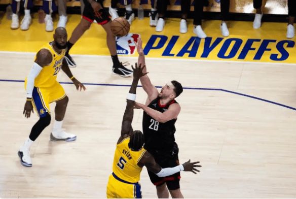 比赛从首节就定调。肯纳德手感烫到冒烟,两记三分+中投独揽11分,湖人开局8-0打懵火箭。次节“菜鸡互啄”时段,艾顿内线19分11篮板硬刚申京(19中6仅19分),八村塁10中6高效砍14分,斯玛特追着谢泼德防出2帽8助,湖人角色球员全员敢打敢拼!