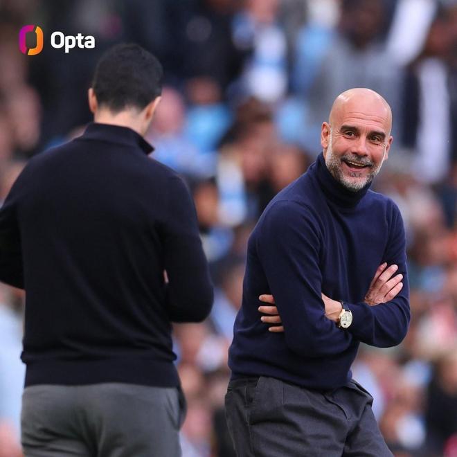 在整个执教生涯中,瓜迪奥拉在带队以联赛第二名身份对阵领头羊时,共取得了8场比赛中的7场胜利,其中在英超联赛中4战全胜,这一成绩也是主教练在该赛事中的并列最多纪录(与弗格森持平)。